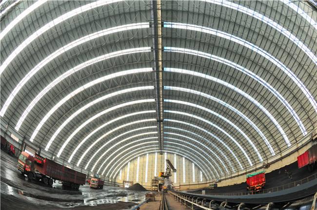 堆场料场封闭式主体结构为新型的钢温岭网架结构,维修结构为温岭钢结构温岭不锈钢板和纤维增强塑料灯具,其外形以温岭网架式和平板为主,连接柱温岭施工自由,设置喷雾自动喷水系统,从而可以实现棚内所有物料的覆盖,减少物料在运输过程中的损耗,起到防尘的作用,减少工厂关闭后的二氧化硫排放量,50mg/m3颗粒排放量小于10mg/m3,非常适合低能耗。低闭库自动感应反应对库存轮胎进行清洁,确保轮胎不受道路污染;封闭的储存区可从源头控制粉尘污染,控制无序排放。